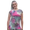 Lehké dámské tričko Mishino KARIN okouzlí jemným akvarelovým motivem v odstínech růžové, šedé a tyrkysové. Elegantní přechody barev vytvářejí dojem malby na hedvábí – ideální pro ženy, které milují ženskost, jemnost a originalitu.