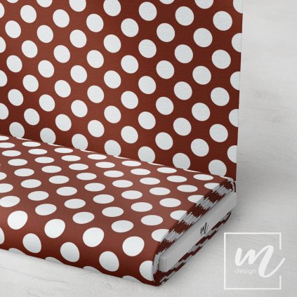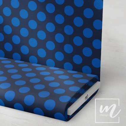 Potištěná metráž s puntíky 3cm nejrůznějších barev a velikostí.