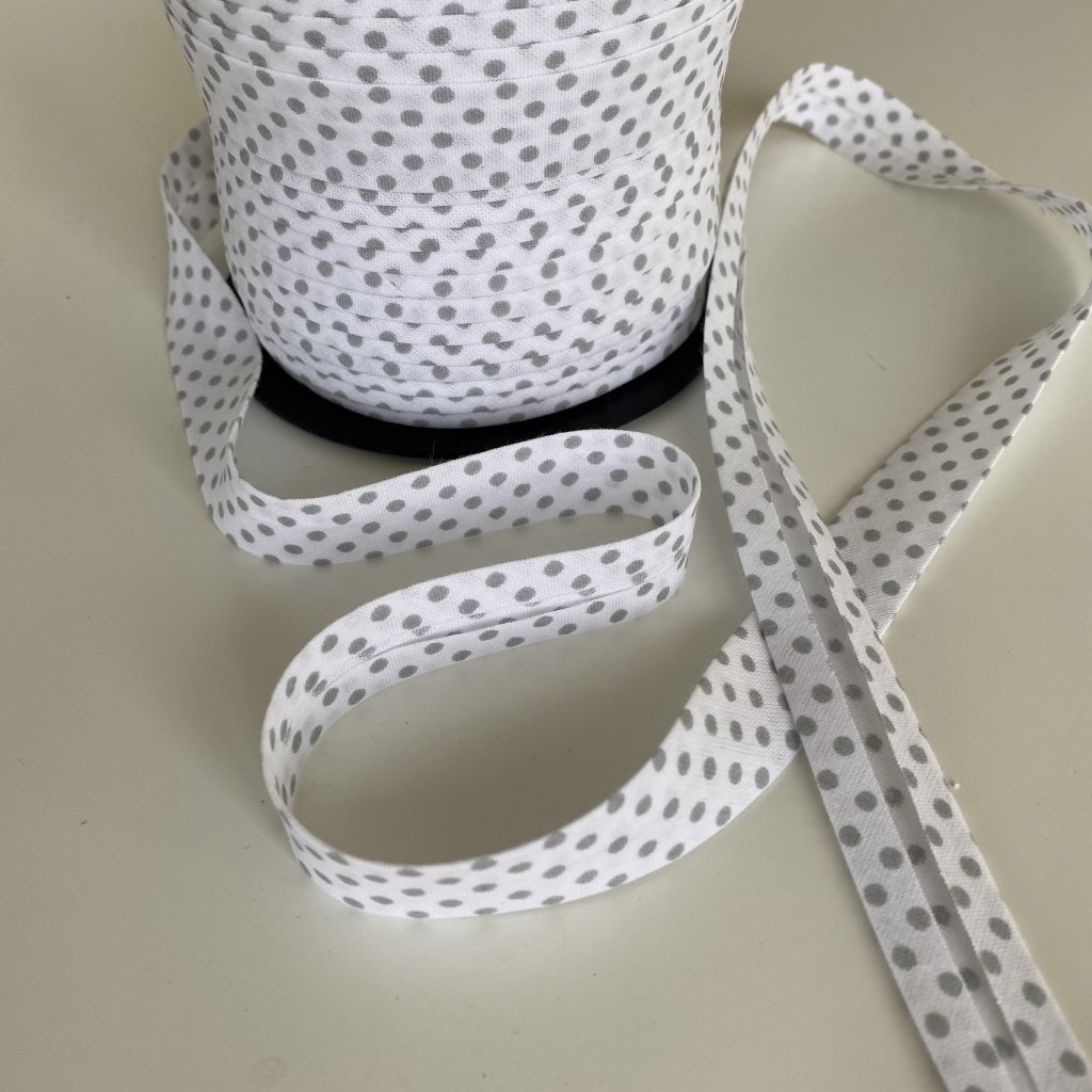šikmý proužek bavlna 18mm šedý puntík na bílé